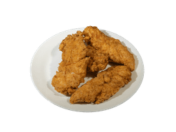 Crispy chicken tenders over rice with rich sauce drizzle.