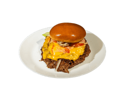 Beef patty topped with chili, jalapeños, cheese & sauce.